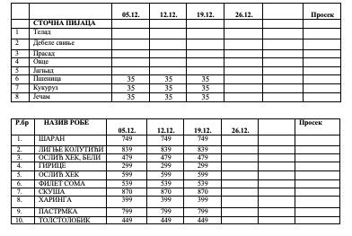 CENE NA PIJACAMA U ČAČKU