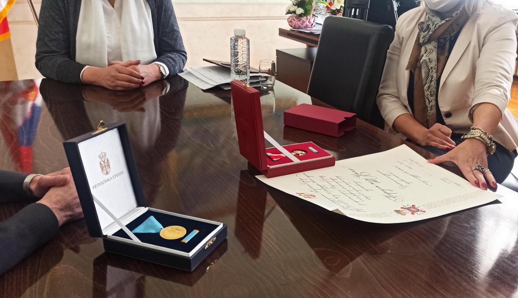 Danas je u kabinetu gradonačelnice Užica upriličen prijem za dobitnike priznanja povodom Dana državnosti Republike Srbije Slavicu Stefanović, direktorku Narodnog muzeja Užice koji je na svoju 75. godišnjicu postojanja odlikovan Sretenjskim ordenom trećeg stepena za dosadašnji uspešan rad na polju očuvanja kulturne i istorijske baštine i dr Slađanu Pavić, načelnicu Infektivnog odeljenja Opšte bolnice Užice, dobitnicu zlatne medalje za zasluge u borbi protiv kovida. Gradonačelnica Jelena Raković Radivojević čestitala je dobitnicima na priznanjima i istakla da su na ponos grada Užica i svih Užičana ova odlikovanja stigla u prave ruke. „Čestitam dobitnicama u nadi da će ova priznanja biti podsticaj i za sve druge užičke institucije i pojedince da u godinama koje dolaze ova velika priznanja stignu i u njihove ruke.“ Slavica Stefanović direktorka Narodnog muzeja Užice istakla je da je ukazom predsednika Republike Srbije Aleksandra Vučića užički muzej odlikovan za posebne zasluge za Republiku Srbiju i građane u oblasti kulture. „Zahvalna sam i gradonačelnici i Gradu Užicu koji su prepoznali naš rad i bili nam podrška pri konkurisanju za ovo priznanje. Ovo odlikovanje nije samo moja zasluga već zasluga generacija kustosa koji su radili sve ove godine u Muzeju, zatim rukovodećeg kadra koji je vodio Muzej ovim pravcem sve ove godine. „Kroz 75 godina rada i postojanja Muzej je dobio dosta značajnih priznanja, zahvalnica i nagrada a ovo državno priznanje je jedno od najvećih koje je Muzej dobio, i ono nam daje inspiraciju da trajemo i istrajemo u našem budućem radu“, istakla je direktorka Narodnog muzeja Slavica Stefanović. Dr Slađana Pavić navela je da je veoma zahvalna na priznanju koje je dobila i istakla da je ono rezultat velikog timskog rada svih medicinskih radnika Zdravstvenog centra Užice. „Volela bih da ovo priznanje shvate kao svoje cela služba anestezije, sve intezivne nege, služba radiologije, pedijatrije i sve druge službe, naše laboratorije, služba hitne pomoći, kovid ambulante, Dom zdravlja i ne samo naše užičke službe već ceo region. Svi su radili maksimalno, sjajno su radili i dalje rade. Isto tako ništa ne bi bilo da nemedicinsko osoblje nije, kada je to trebalo, radilo po 24 časa i rade i dalje“, rekla je doktorka Slađana Pavić. Ovo priznanje bih podelila i sa epidemiolozima Zavoda za javno zdravlje koji formalno nisu u sklopu Zdravstvenog centra, ali isto tako i sa svim zaposlenima u Čigoti koji su se zajedno sa nama lavovski borili i dalje se borimo.“ Ukazom predsednika Republike Srbije, povodom Dana državnosti, odlikovano je 164 pojedinca, ustanova i udruženja.