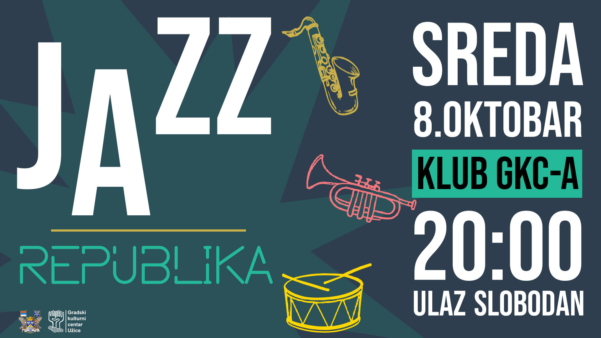 Grupa iskusnih muzičkih profesionalaca, zaljubljenika u jazz muziku, okupljenih u muzički sastav Jazz republika nastupiće u sredu 8.oktobra u klubu Gradskog kulturnog centra. Koncert će biti održan u okviru programa obeležavanja Dana grada. Na sceni u Velikoj sali GKC-a u petak, 10. oktobra od 20 časova biće odigrana savremena komedija „Džepovi puni kamenja“. Ova tužna i duhovita priča vodi publiku u malo irsko selo, gde se meštani kao statisti uključuju u snimanje holivudskog filma, suočavajući se sa iluzijama i realnošću, snovima i životom. Predstava donosi i snažan komentar o sudaru svetova – sjaja Holivuda i siromaštva svakodnevice. Ulaznice po ceni od 1300 dinara mogu se nabaviti na biletarnici GKC-a od 11 do 16h.
