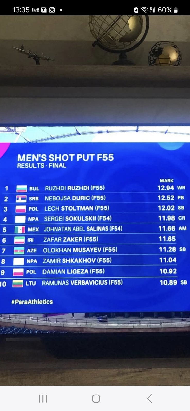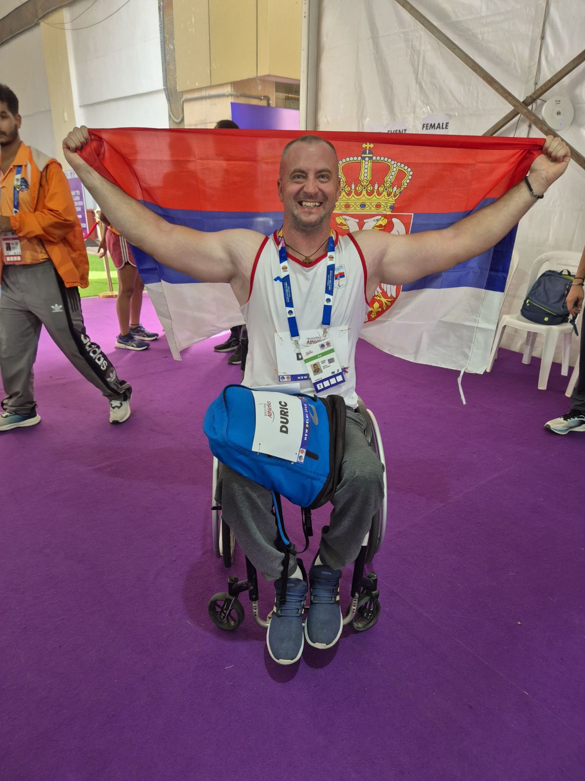 Užički paraatletičar Nabojša Đurić je naSvetskom prvenstvu u paraatletici u Nju Delgiju osvojio srebrnu medalju u bacanju kugle (F55). Pored osvojenog srebra, Đurić je čak četiri puta popravio svoj lični rekord i na kraju završio sa hicem od 12,52 metra. To mu je donelo titulu vicešampiona sveta: -Bilo je zaista lepo takmičenje, baš onako kako smo očekivali. Prezadovoljan sam rezultatom, ovakav hitac nikada nisam bacio na treninrzima. Ko i prople godine, ponovilo se da sam bacio više na takmičenju, nego na treningu, što me posebno čini ponosnim. Moj trener Miloš veruje u mene i stalno mi govori da mogu uvek više- rekao je Đurić nakon osvajanja medalje. I trener Miloš Zarić je prezadovoljan: -Konkurencija je bila veoma jaka, bilo je 16 takmičara, najpre su bile kvalifikacije, među njih četiri ko će još da dođe u finale, mi smo otišli direktno u finale, bacali smo peti po redu, prvo su se izabacali ovi svi najbolji, pa smo došli i mi,i onda smo pokazali šta znamo i umemo. Nebojša je dao sve od sebe i pobedio je i sebe i svoju konkurenciju. Bili su iznenađeni Nebojšinim rezultatom , nisu mogli da veruju jer su navikli na neki njegov stari rezultat koji je on bacao, ali mi napredujemo, idemo ka boljem i sigurno će biti još boljih rezultata.Hvala svima koji su nas podržavali, mojoj porodici, gradu Užicu, svi su verovali i podržavali nas. – rekao je Zarić.
